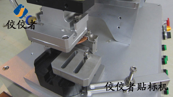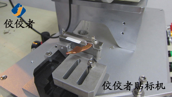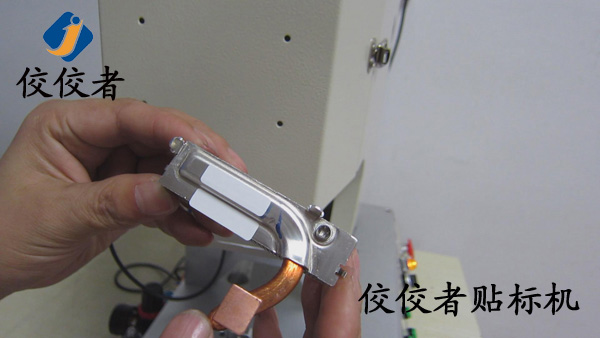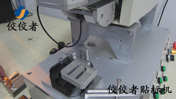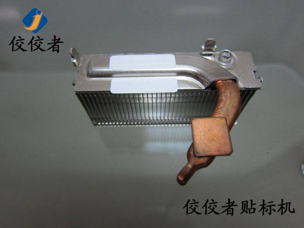 因為這款產(chǎn)品需要貼兩張標(biāo)簽。那么我們首先在散熱器上面貼上一張標(biāo)簽。當(dāng)我們貼好一張標(biāo)簽之后,再貼另外一張標(biāo)簽的時候,我們需要再一次調(diào)整模具的位置來實現(xiàn)另外一張標(biāo)簽的貼標(biāo)。所以我們建議客戶在同一個產(chǎn)品上面貼兩張標(biāo)簽的時候,盡力做到一張一張的批量貼標(biāo)。這樣可以有效增加生產(chǎn)率。