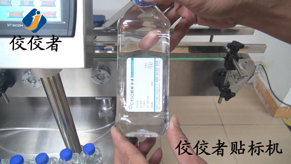 第二步:礦泉水導瓶完成后進入壓頂機構傳送至測物電眼,當測物電眼檢測到產品時機器自動貼標。