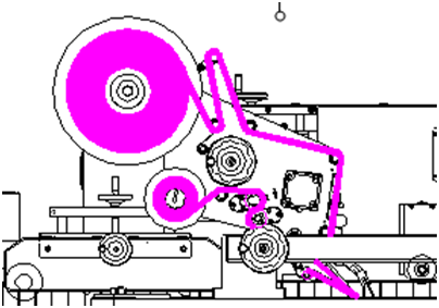 按圖示出標方向,把標簽料卷裝入,再把三角形料盤套上并裝好扭緊;