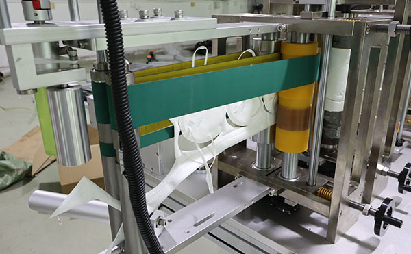 該設備采用同步送料與張力自適應調控技術,面層、濾層、底層三卷材料在高速進給時始終保持同步,避免因材料拉伸不均導致的折疊錯位或斷裂。配合光電監測系統,當某卷材料接近用盡時可提前預警并自動銜接,無需停機換料,真正實現長時間連續作業。