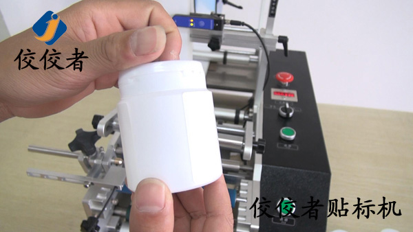 生活中我們經常會見到貼這各種標簽的白色塑料小藥瓶,今天就來介紹這些白色塑料小藥瓶上面的標簽是怎么貼上去的,先來看看這臺半自動塑料圓瓶貼標機(又稱半自動圓瓶貼標機)的圖片吧。